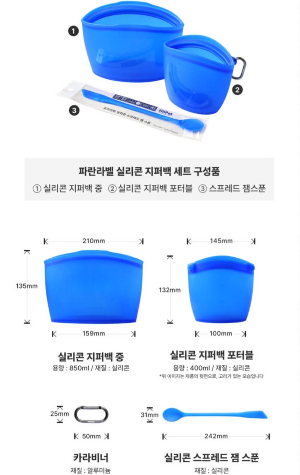 - 특별 할인가: 파란라벨 건강빵 포함 2만 원 이상 구매 시, 실리콘 지퍼백 세트를 1만 2,500원에 구매 가능 (정상가 대비 20% 할인)